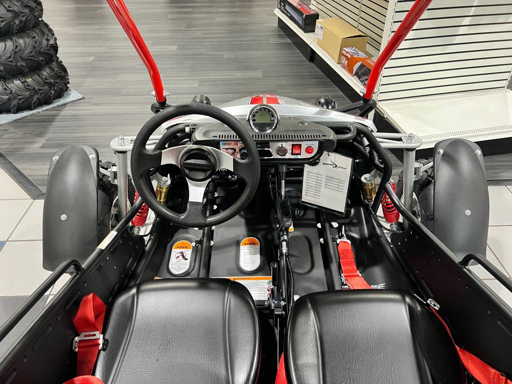 The HAMMERHEAD GO CARTS GTS150 PLATINUM is a shining star in the powersports universe. Its distinctive silver/red color scheme turns heads and commands attention, while under the hood, it boasts a robust, zero-mileage engine primed for performance. As a brand-new model, it comes with the assurance of peak condition, ready to roar into action the moment you take the helm.
