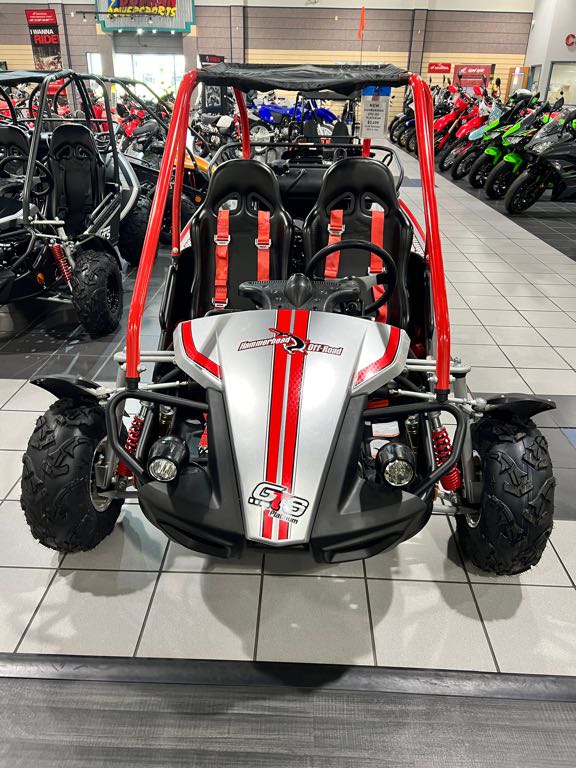 Unleash your inner adventurer with the brand-new 2024 HAMMERHEAD GO CARTS GTS150 PLATINUM, now available at Dothan Powersports, your trusted powersports dealer in Dothan, AL. This top-of-the-line, silver and red marvel is engineered for speed, power, and unbridled fun, promising an exhilarating ride every time you hit the throttle.