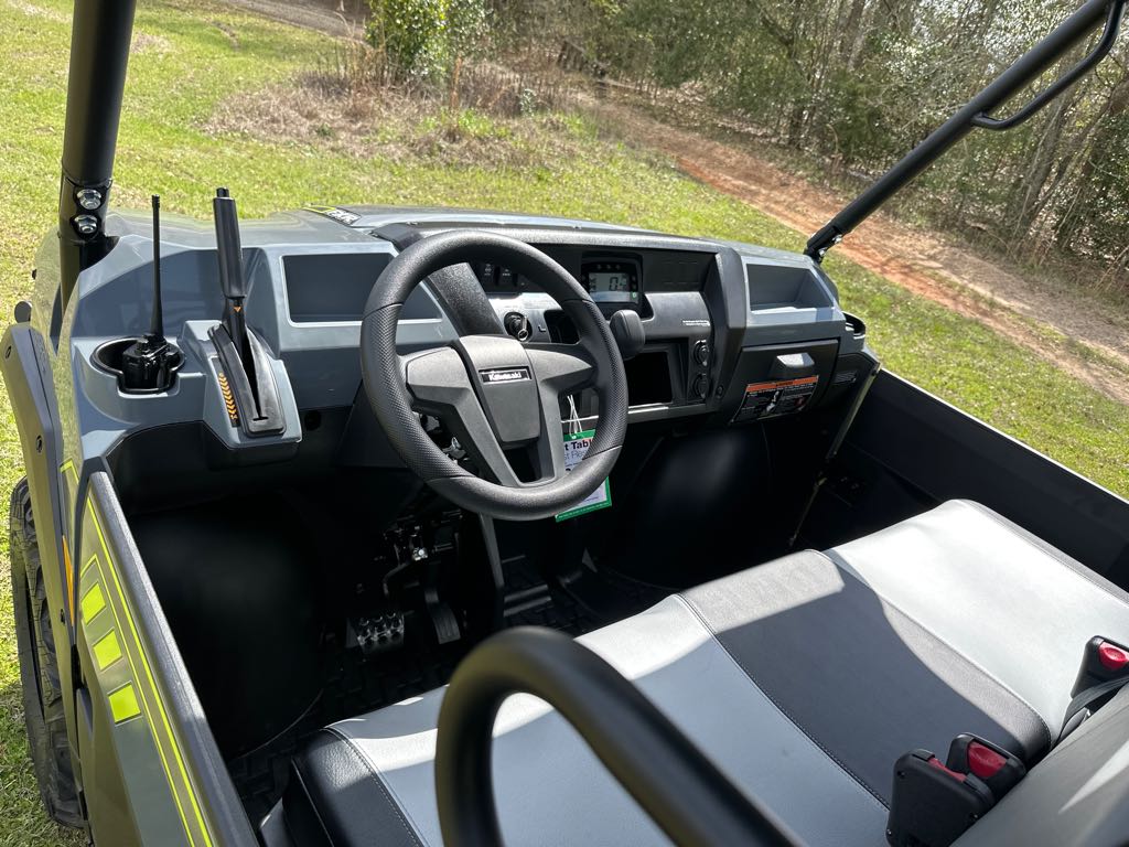 Enjoy a smooth comfortable ride with long-travel front and rear double wishbone suspension, increased ground clearance, speed-sensitive Electric Power Steering (EPS), and a spacious 3-passenger cabin with supportive contoured bench seating. Kawasaki's high-grade Electric Power Steering (EPS) system is speed-sensitive, offering light steering effort at lower speeds while reducing assistance as vehicle speed increases to ensure responsive steering.