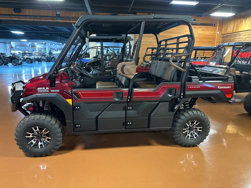 The Kawasaki MULE PRO-FXT™ 1000 Platinum Ranch Edition comes with the full package featuring contoured bench seating, four LED headlights, a WARN® VRX 45 powersport winch, and a 999cc Kawasaki engine for reliable performance. The MULE PRO-FXT™ 1000 LE is a full-sized, high-capacity side x side that features our exclusive 3- to 6-passenger Trans Cab™ system. With a reliable 999cc Kawasaki-built engine, this dependable side x side is ready to transport heavy loads or transport the entire crew without breaking a sweat. Work harder and smarter with the dependable help of the MULE PRO-FXT 1000 LE.