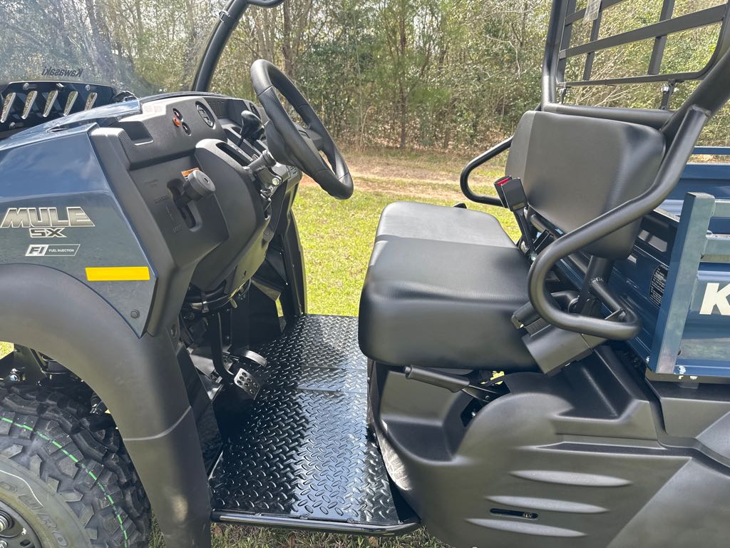 Steel cargo bed with textured floor is durable and scratch-resistant. Built to last, all MULE SX™ side x side vehicles are backed by the industry-leading Kawasaki STRONG 3-Year Limited Warranty.
