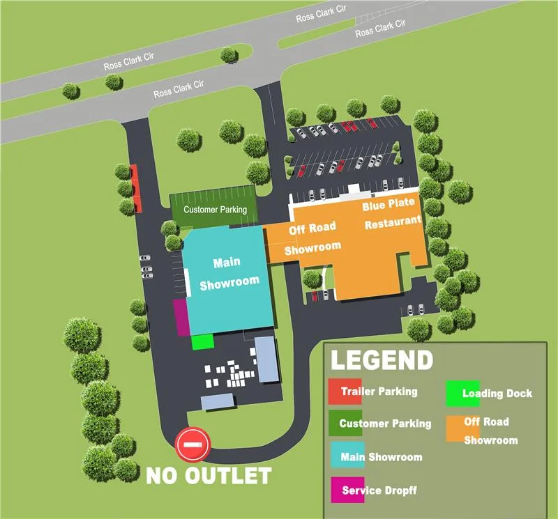 Cars, Trucks & Motorcycles should park in our main parking lot in front of the main Dothan Powersports building.
